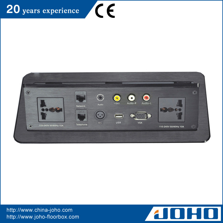 2. Multi port zinc alloy Desk Power Outlet after using, light to close the trunk lock, press the socket panel on the front panel of each function module interfaces with hidden, closing the socket after maintain flush with the desktop.